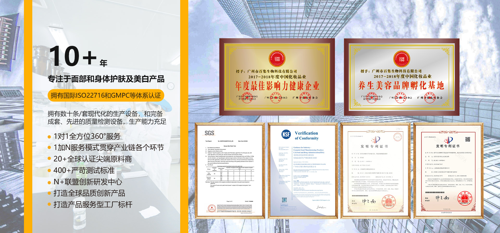 百集生物擁有16位專業(yè)工程師,79多位研發(fā)人員,6000多款成熟配方 百集生物研發(fā)中心占地3000多平方米,擁有成熟的研發(fā)團(tuán)隊(duì)及完善的研發(fā)設(shè)施,使用納米技術(shù)、滲透壓技術(shù)、 液晶微乳化技術(shù)等,已經(jīng)擁有一系列穩(wěn)定性高、滲透性強(qiáng)、吸收性好、效果顯著的成熟配方。